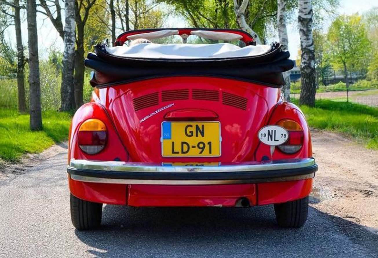 Deze rode Volkswagen Kever cabriolet, ook wel Lady in Red genoemd, stamt uit 1979. Met haar bolle voorruit en iets moderner ogend dashboard straalt ze tijdloze elegantie uit. Een stijlvolle klassieker voor iedereen die houdt van retro-charme en onvergetelijke ritten.